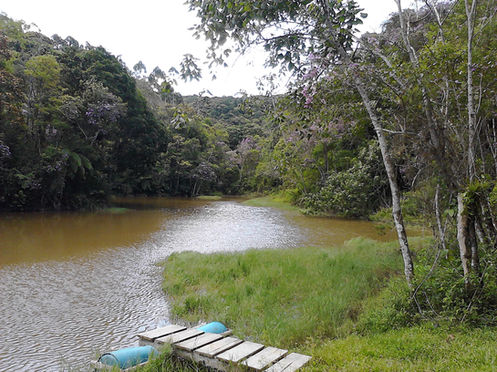 Nas margens da nossa represa, um pequeno camping, quase selvagem, em meio à densa Mata Atlântica.